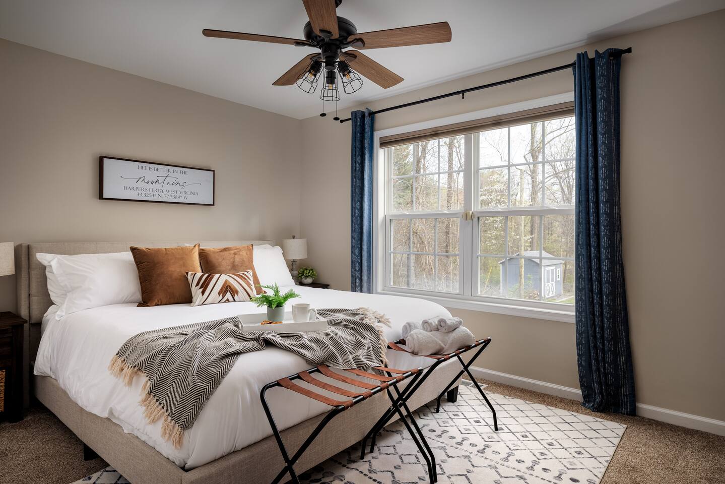 This split-level gem is filled with charm and warmth, blending rustic farmhouse touches with comfortable style to make you feel right at home. Whether you're sipping coffee on the porch, curling up with a good book, or simply taking in the view—this place is all yours to enjoy. We hope you settle in, breathe deep, and let the peaceful mountain vibes wrap around you like a favorite blanket. Welcome to your getaway. We’re thrilled to have you. You’re in for something truly special. From the front door, you’re less than 5 miles from the stunning trails and scenic views of the National Park, with the Shenandoah and Potomac Rivers just waiting to be explored. In just 6 minutes, you can be sipping wine at a charming vineyard, hiking along breathtaking ridgelines, or enjoying a delicious meal in the heart of historic Lower Town Harpers Ferry. And don’t forget—quaint, history-rich Charles Town is just around the corner, perfect for a leisurely stroll, a cozy café stop, or a little antiquing adventure. Whether you're here for the history, the hikes, the wine—or just the peace and quiet—this place is meant to be your perfect little escape. Welcome to the best of the Blue Ridge Mountains! Full video tour of entire house is available “Mountain View Cottage WV Full Tour”. KEY FEATURES: ⭐️Bonus Space in the Basement ⭐️Allergen free ⭐️Free Parking ⭐️ VERY EARLY Check In/Late Check Out ⭐️Near National Park + Major Sight Seeing ⭐️Amazing outdoor firepit oasis ⭐️Recently built with 2 living room areas ⭐️Bedrooms: 1 King, 1 Queen, 2 Twins ⭐️Pull Out Sofa in Lower Level ⭐️2 Bathrooms ⭐️Full kitchen w/ stainless steel appliances ⭐️Custom fireplace built by owner ⭐️Beautiful deck; picnic seating area & grill ⭐️Very fast WIFI + Flat screen TV ⭐️Kids toys + games + projector night light ⭐️Baby crib + baby gear (by request) ⭐️Washer + Dryer ⭐️ Sleeps 6 and up to 8 for a fee Our open-concept living space was designed for comfort and connection—with plenty of room to relax and gather. Just up one short flight of seven steps from the front door, you'll find the heart of the home: all three cozy bedrooms, two full bathrooms, a bright and welcoming kitchen, dining area, and a living room that invites you to kick back and unwind. Follow us @Mountainviewcottagewv